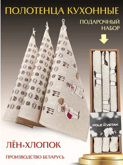Подарочный набор полотенец для кухни с петелькой, льняные