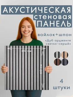Акустическая панель 4шт. 60х60х0,8см черный войлок, шпон
