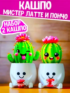Набор Кашпо для цветов и кактусов мистер Латте и Пончо