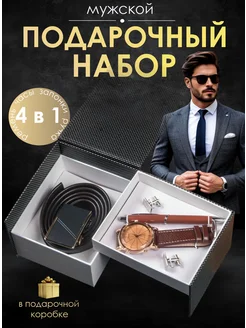 Подарочный набор часы ремень ручка и запонки