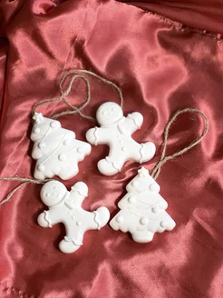 Новогодний набор 4 гипсовых фигурок для раскрашивания