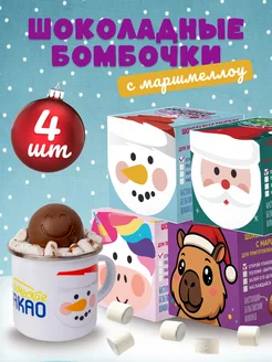 Новогодние шоколадные бомбочки с маршмеллоу набор 4 шт