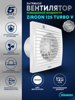 Вентилятор вытяжной Zircon 125 TURBO V повышенной мощности