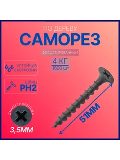 Саморез по дереву черный фосфатированный 3,5х51мм (4кг)