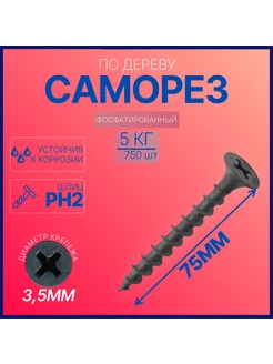 Саморез по дереву черный фосфатированный 3,5х75мм (5кг)