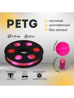 Розовый PETG пластик для 3D-принтеров 0.5 кг (1,75 мм)