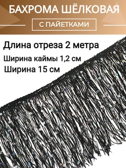 2м Бахрома шелковая с пайетками черная
