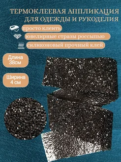 Термоклеевая лента аппликация из черных страз россыпью