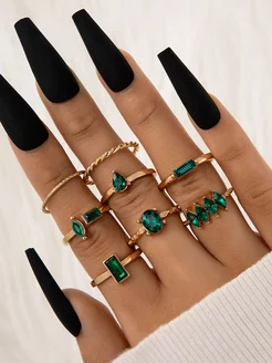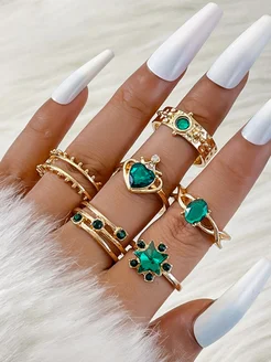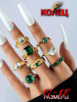 Набор колец с зелеными камнями бижутерия