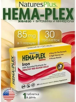 Hema Plex Хелатное железо, 30 таблеток (США)