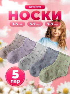 Носки детские для девочек с рисунком цветы набор 5 пары