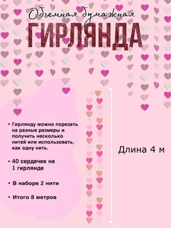Набор объемных бумажных гирлянд - сердечки 2 шт