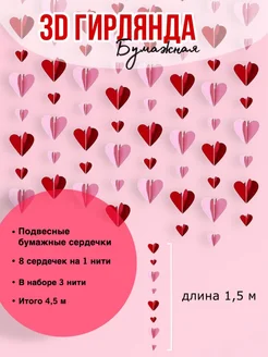Набор 3D гирлянд бумажных - сердечки 3 шт