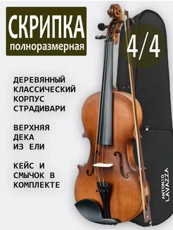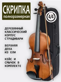 Скрипка полноразмерная матовая в кейсе со смычком