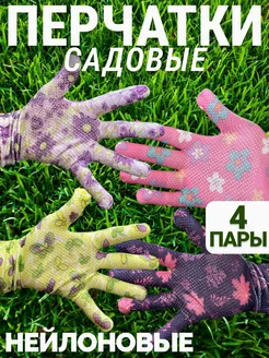 Перчатки рабочие садовые хозяйственные с покрытием 4 шт