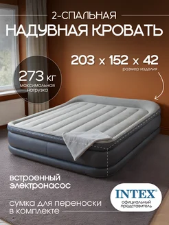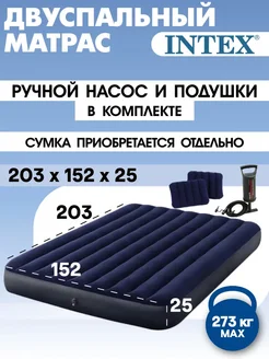 Матрас надувной 203x152x25, насос и подушки, 64765
