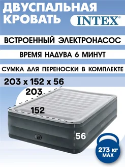 Матрас надувной 236x152x86 со спинкой насос 64448