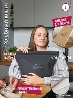 Хлебница, льняной Хлебный клатч Black Edition L, объем 9,7 л