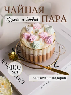 Чайная пара стеклянная чашка с блюдцем и ложкой