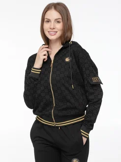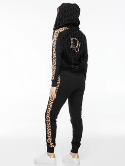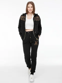 Костюм стиль худи черный брюки логотип принт