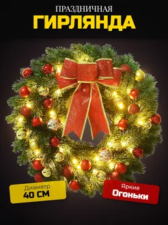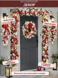 Набор новогодних украшений 6 шт венок и хвойная гирлянда