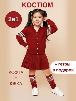 Костюм вязаный для девочек с юбкой