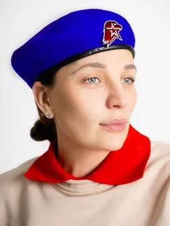 Берет со значком бесшовный синий фетр