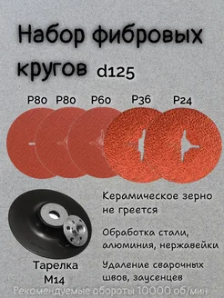 Набор фибровых шлифовальных кругов d125 Р24 Р36 P60 Р80