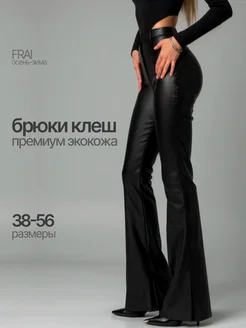 Брюки клеш кожаные классические от колена с высокой посадкой