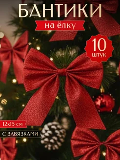 Украшения елочные бант на елку сетчатый красный 12*15 размер