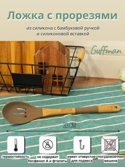 Ложка с прорезями, шумовка из силикона и бамбука, 33 см