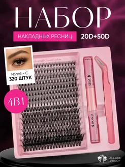 Накладные ресницы пучки с клеем набор 320 шт
