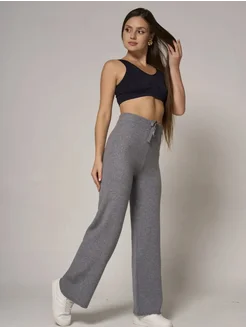Брюки теплые рубчик палаццо на резинке