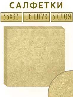Салфетки бумажные Золото для сервировки праздничные 33*33