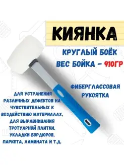Киянка белая резина, фиберглассовая рукоятка, 910г