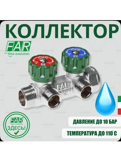 Коллектор для воды регулирующий 2 отвода 3 4"х1 2"