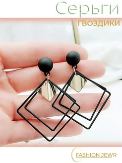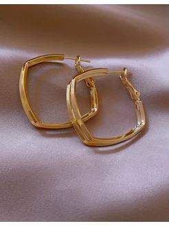 Серьги кольца квадратные Двойной акцент