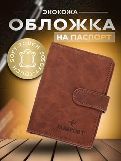 Обложка на паспорт на магнитной кнопке из экокожи коричневая