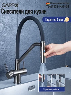 Смеситель для кухни гибкий с фильтром YG4398SS-MAG-GG