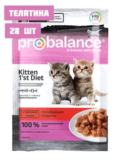 Корм влажный Пробаланс 1st Diet для котят Телятина 28х85гр