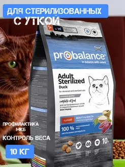 Корм сухой Пробаланс Sterilized для кошек с Уткой 10 кг