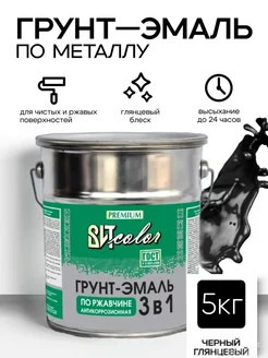 Краска по металлу и ржавчине, по дереву черная 5 кг