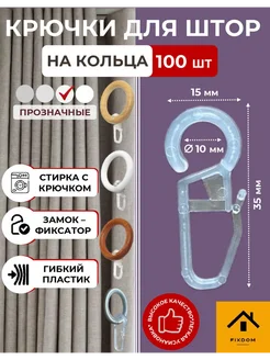 Крючки для штор на кольца пластмассовые прозрачные