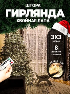 Новогодняя гирлянда штора хвойная лапа мишура 3х3