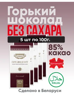 Шоколад горький без сахара Президент 85 % 5шт по 100г
