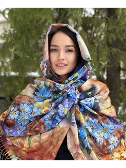 Палантин картина двусторонний шарф кашемир