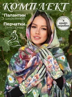 Палантин шарф кашемировый теплый комплект с перчатками