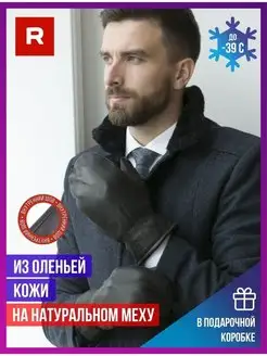 Перчатки люкс кожа оленя натуральная на шерсти зимние теплые