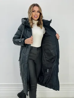 Пуховик длинный с капюшоном