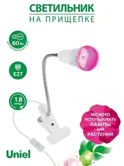 Светильник для фитолампы на прищепке на гибкой ножке E27